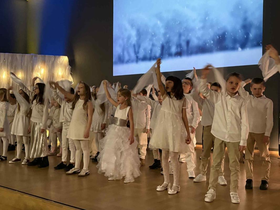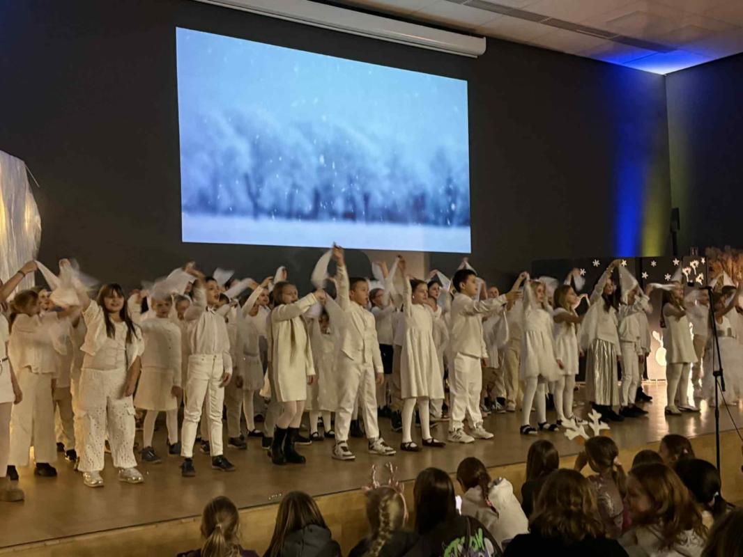 Uroczystość rozpoczęła się koncertem świątecznych piosenek, w wykonaniu uczniów klas 2a i 2b oraz szkolnego chóru. Wprowadził on wszystkich w radosny, magiczny nastrój nadchodzących świąt.